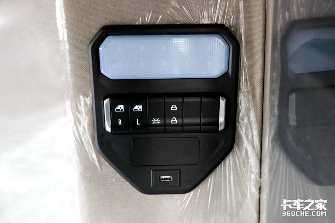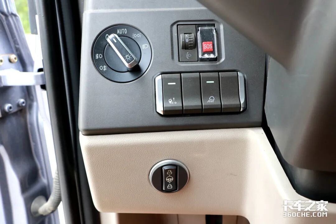 此外,豪沃MAX在门板处还设置了双闪灯,同时在中控区域也有双闪灯,这样设置的目的很简单,一旦需要打开双闪时,卡友就不需要上车即可操作。据悉高配车型还会在此安装副启动按键,让卡友操作更加便捷。
