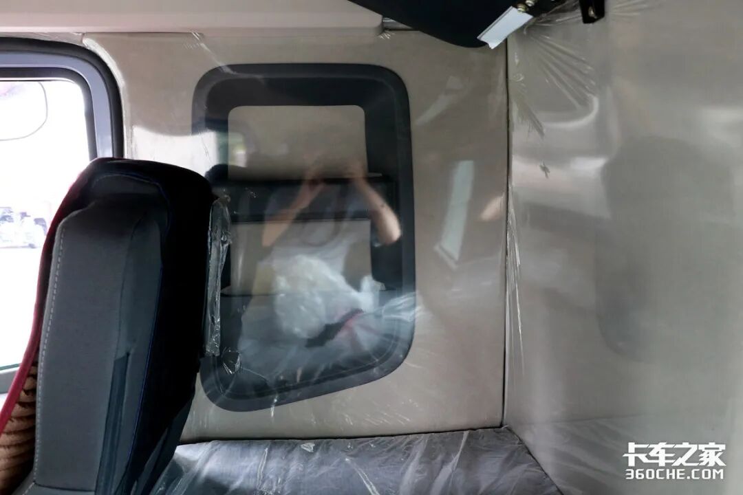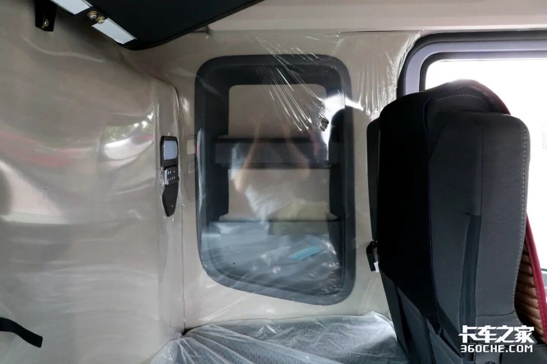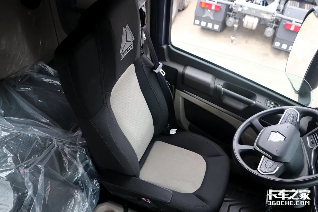 实拍车型采用了气囊减震式的座椅,经过我们实际体验,这款座椅的舒适性较强,并且还配有座椅通风,能够在较为炎热的夏天,为我们卡友提升舒适性。座椅的座垫长短适中,基本可以满足各个体型的卡友的乘坐需求。