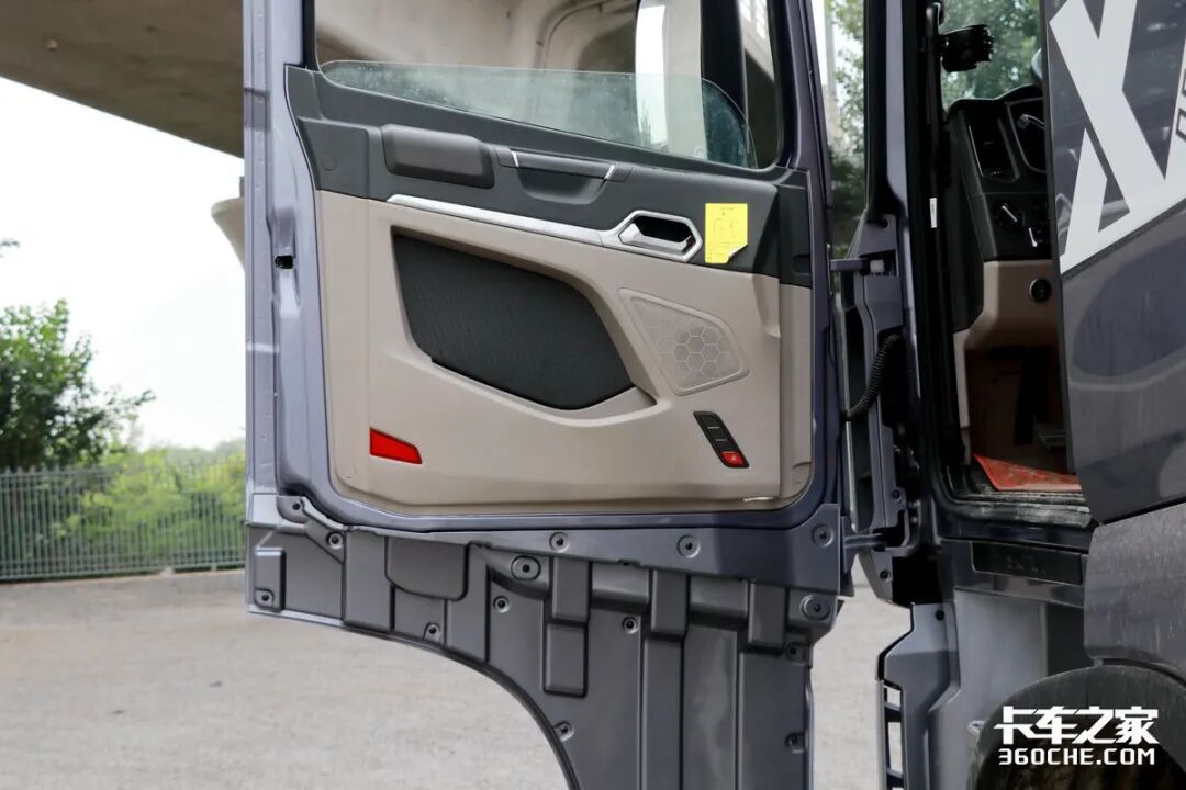 打开车门,可以发现MAX车型的制作工艺比较细腻,双拼色的门板显得比较时尚,而且在枕手处放置了一块软性材料,这样即便是高速巡航状态下,卡友在乘坐方面的体验也比较舒适。