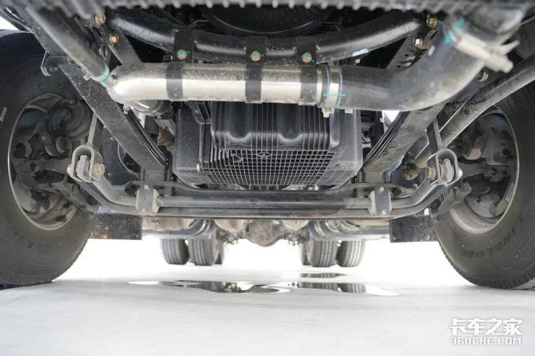 传动系统部分,与之匹配的是伊顿EHDM-27N112C 12档AMT变速箱,除了能够降低驾驶负担,还能提高运营的稳定性。除此之外,这台轾德炎同样装配有液缓。底盘方面,轾德炎采用的是汉德6.5吨前桥,13吨汉德后桥,后桥速比为3.364,前后桥均采用的是免维护设计,悬架采用的是前2片钢板弹簧后8气囊空气悬架的设计。