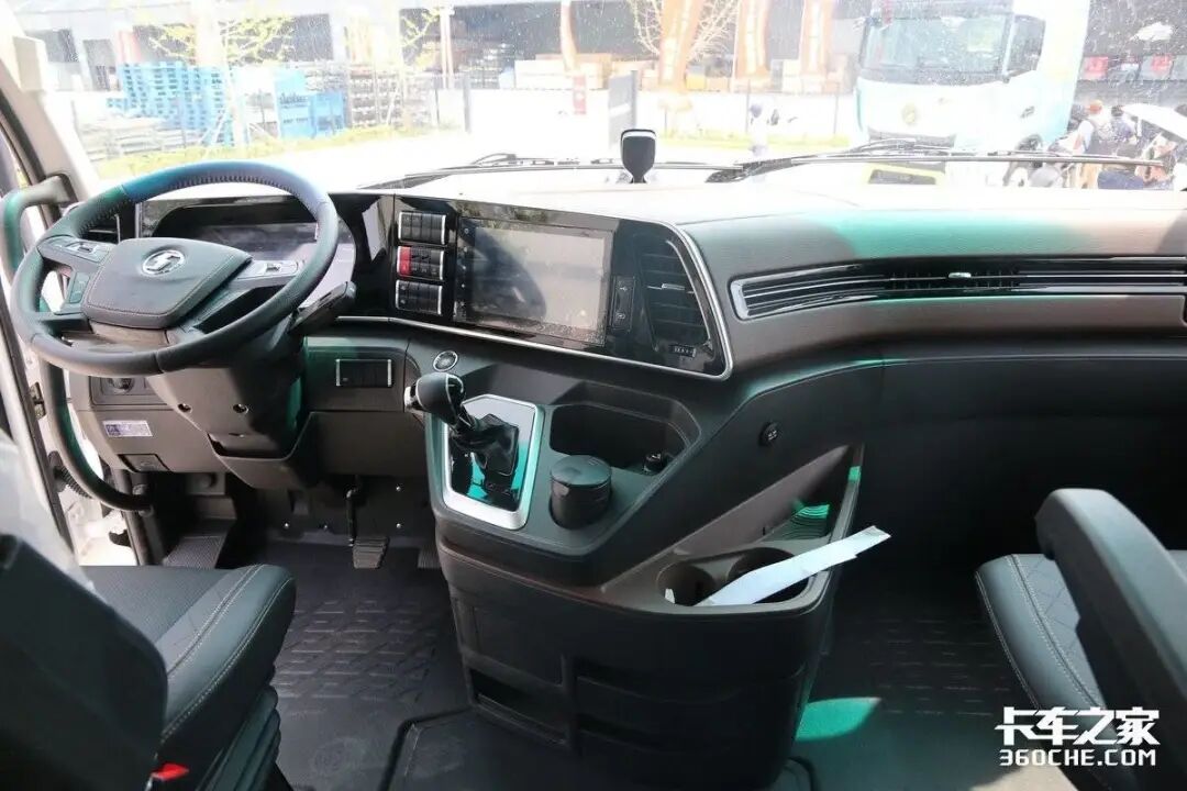 传动系统部分与之匹配的是伊顿康明斯12档AMT变速箱,12档超速档设计,并根据国内道路进行了深度集成标定,能在不同路况下自动切换最佳档位,运营更加稳定。