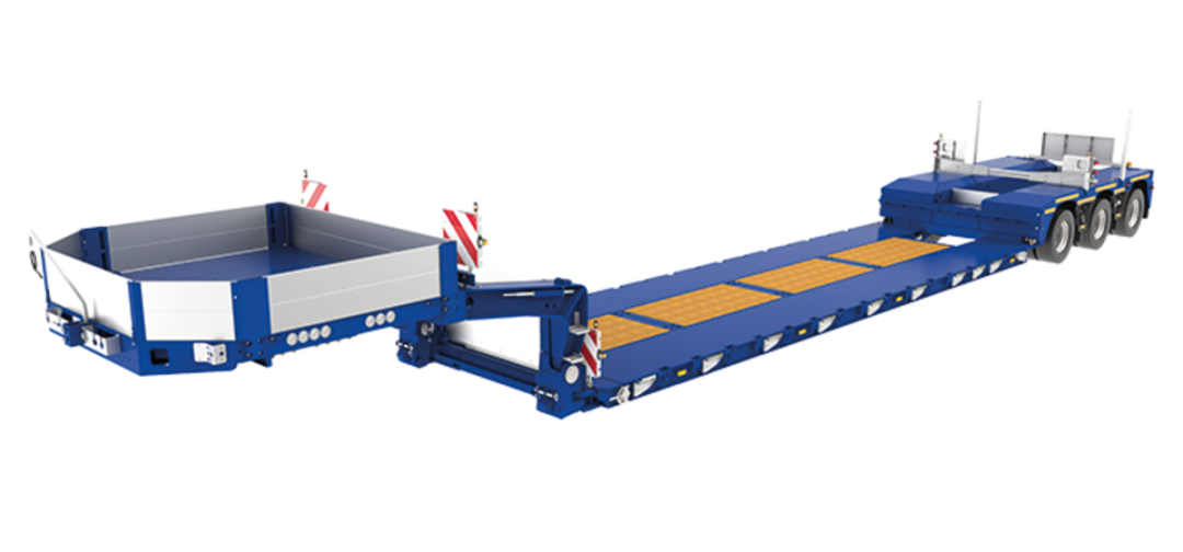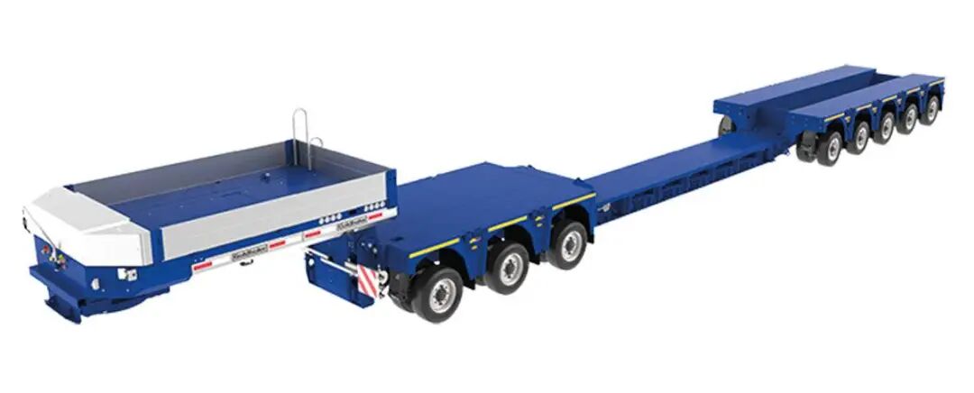 其优势在于,通过“双下降”高度,可以进一步降低货物装卸区域的整体高度,让货物重心更低,重心低也就意味着它比普通的低平板运输车更加安全。它用途极其广泛,可用于各种重型和超大、超长货物,包括工业品、油气储罐、轨道车、机械或超大集装箱。