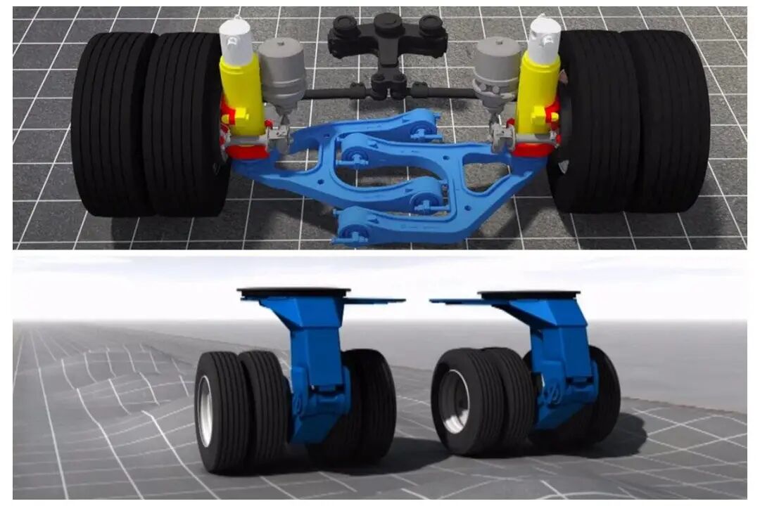 或许,单从表面看,这一类车型无非就是“低趴”,重心低。但事实远非这么简单,其中的技术含量极高,我们可以试想一下,这一类挂车的作战区域通常会面对山地、非铺装路面以及狭窄区域等极限工况,车辆的转弯半径、重负荷下的转弯性能、车辆的通过性都是极大的考验,而完成这些挑战的核心就是“技术实力”。
