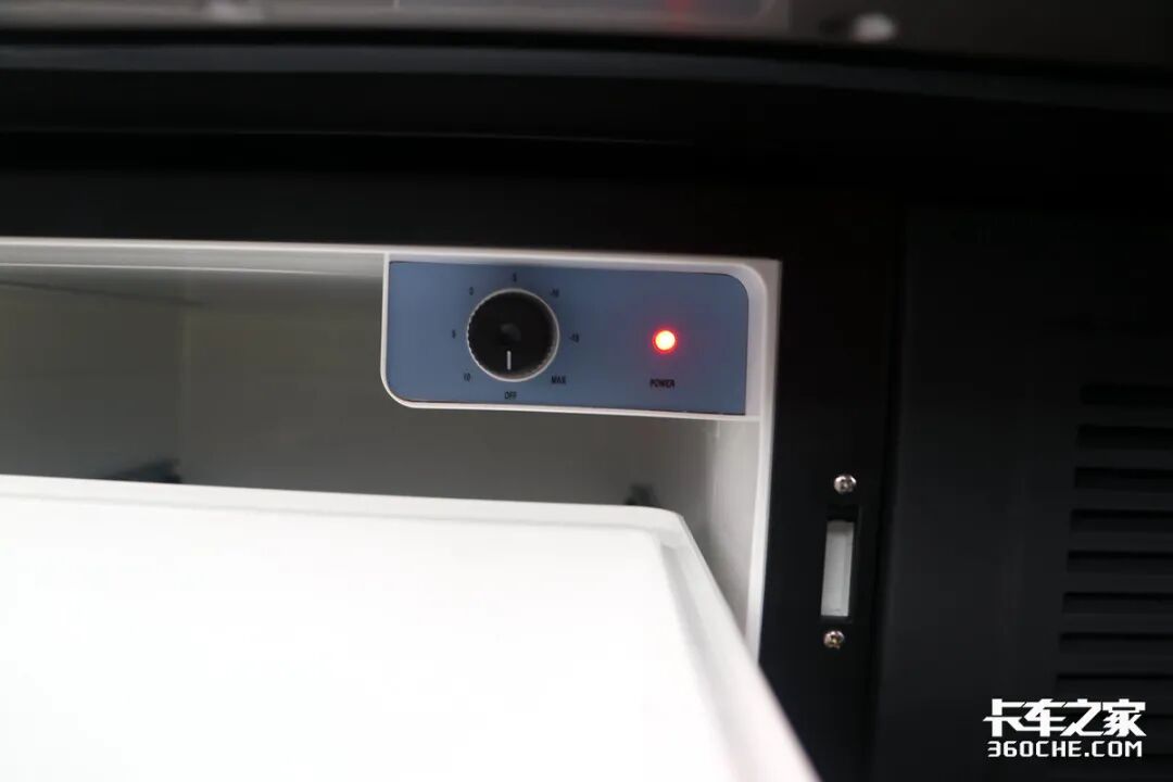 实拍车型还配备了原厂提供的车载冰箱,目前看来这款冰箱提供冷藏、冷冻一体的功能,通过旋转旋钮即可选择温度,在零上10度——零下15度的范围中任意调节。在行车途中想喝点冰镇饮料基本可以说是小菜一碟。