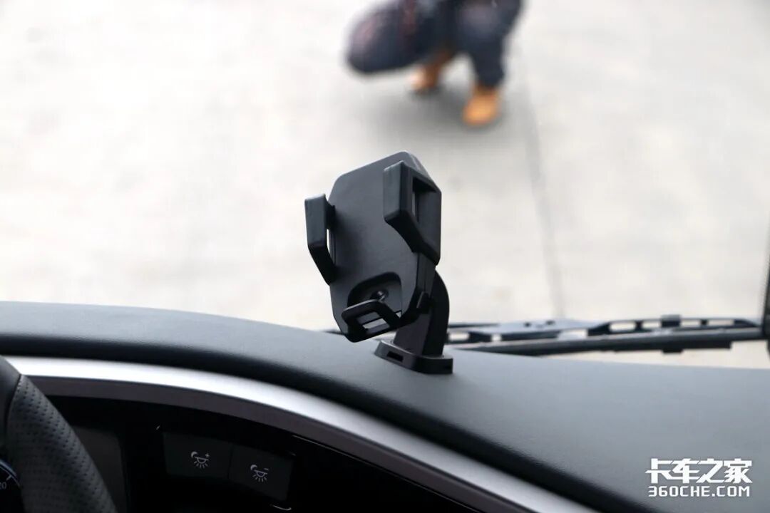 内饰的整体风格和KX车型比较接近,在布局上的差异比较小,而在细节方面的区别则比较明显。方向盘采用了KX的同款造型,但是在包覆材质上选择了更厚更舒适的皮质,握感很出色。当下不少卡友参与运输时,使用手机的频率越来越高,GX也紧跟这一趋势,在仪表台上方加装手机支架。