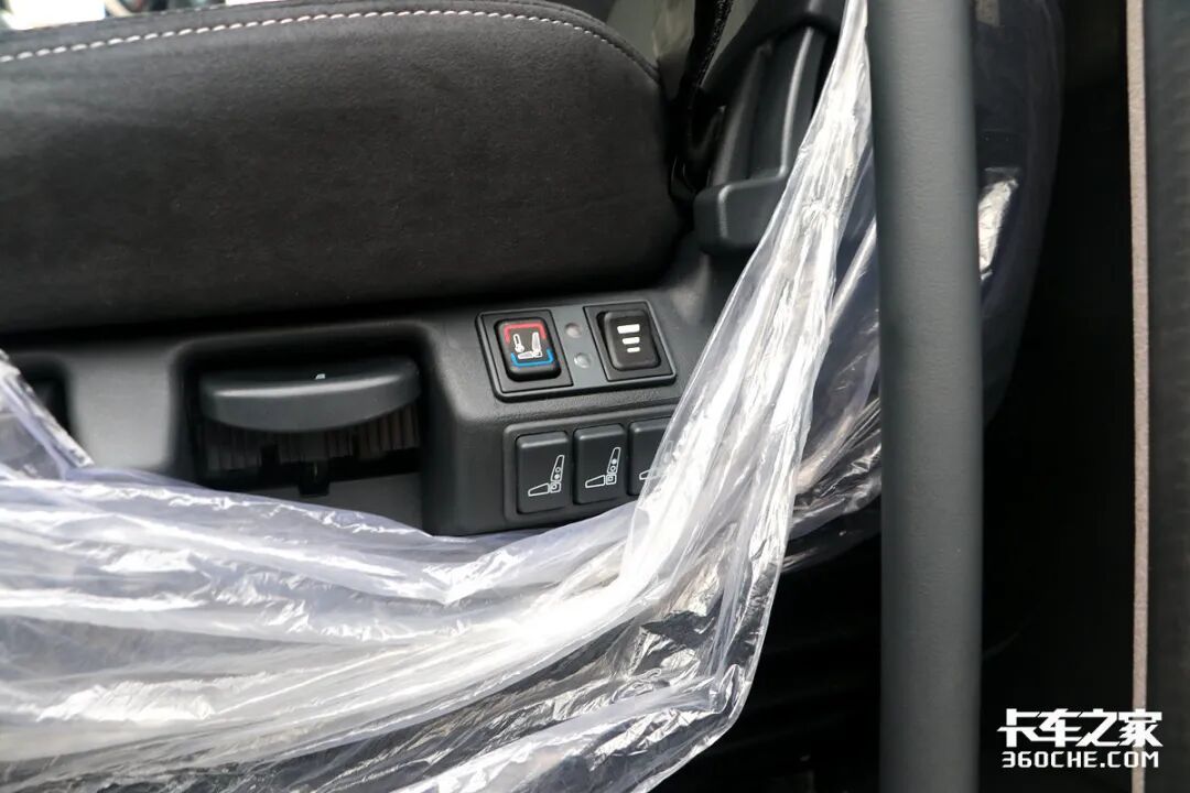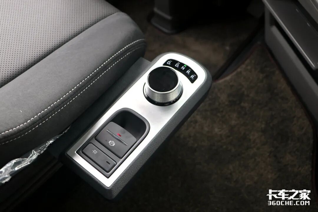 第二项大变化就是GX的换挡机构了,此前KX车型使用的是放置在中控面板上的旋钮式换挡,而这款GX则是将旋钮式换挡放置在了主驾座椅右侧。从做工来看,这款换挡机构在旋转的质感上以及设计上非常精致,有接近乘用车的水准,并且采用了主车、挂车的电子断气刹,显得整车内饰看上去更加简洁、高端。