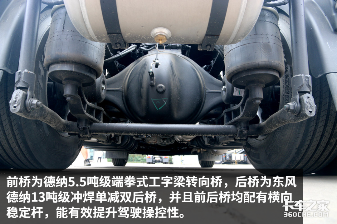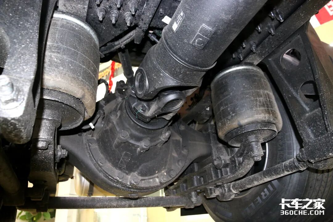 在底盘方面,GX使用了前两片簧后空气悬架的设定,配备四个空气包,得益于空气悬架的加入,这台GX不仅可以更方便的进行甩挂运输,针对冷链、高附加值的产品也可以对货物提供更强的运输稳定性。