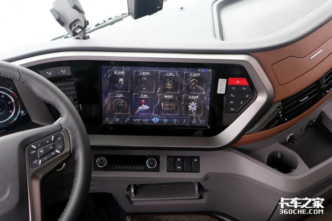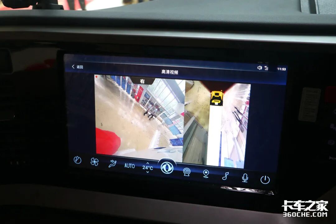 和天龙KX相同,实拍的GX车型也配备了360环视影像,这项配置的加入,无疑让卡友进出狭窄、拥挤的货场能够更加轻松,能够降低剐蹭的概率。