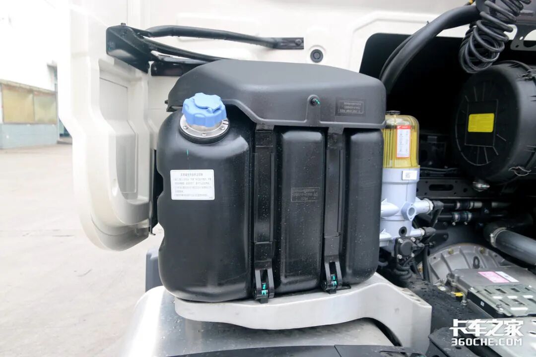 进入国六阶段,车辆的尿素消耗量增大,GX和很多国六牵引车相同,选择将尿素罐上移。放置在主油箱上方,并且下方也采用了铝合金支架。虽然现阶段这样设计在我们卡友加注瓶装尿素时略有麻烦,但是有消息传出,未来加油站将会引进尿素枪的设计,能够完美解决这一问题。