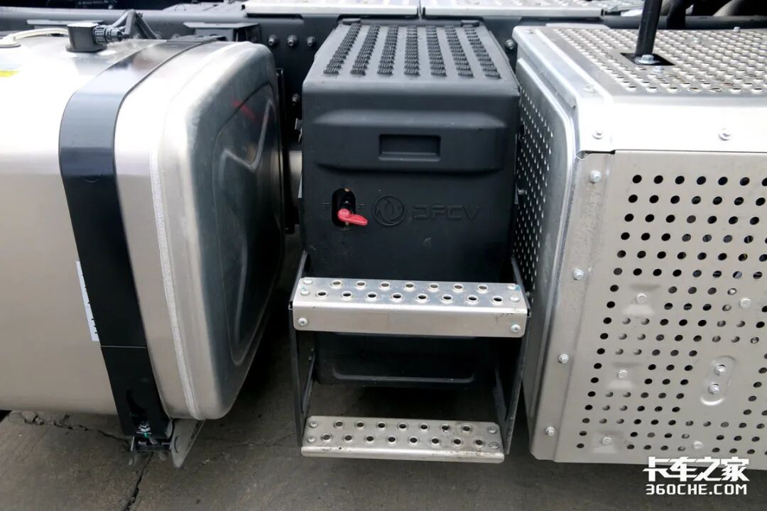 此外,为了进一步利用底盘空间,GX选择将储气筒等装置放置在底盘下方和车尾,将车辆底盘的两侧空间扩大,用于放置更大的后处理系统和油箱。油箱方面,GX车型的油箱容积为1250升,这个尺寸非常夸张,能够为标载状态4X2的GX车型提供接近4000km的续航能力,对于需要跨越多省的快递、快运而言,具有很强的优势。
