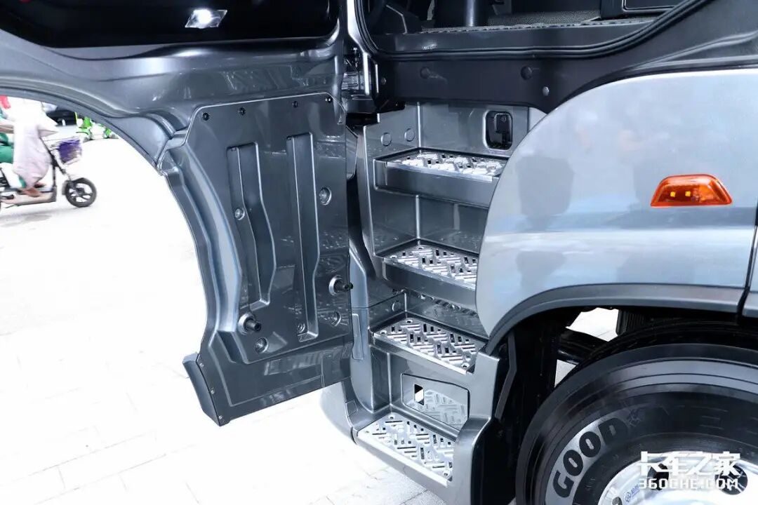表现好的地方在于最上级踏板上方,布置有前面罩开关拉手,比之常见的在驾驶室内左小腿位置,易找好操作,便捷性可谓是大大提升。