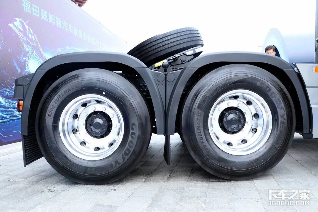 同时实拍车全车适配有来自于珀然的铝合金轮圈,以及固特异品牌的12R22.5型号低滚阻轮胎,以及前二后三片板簧悬架。根据卡车之家车速计算器得知,当发动机转速处于1000-1200rpm经济转速时,车辆最高档时速为75-90km/h,也极为符合整车运输场景定位需求。