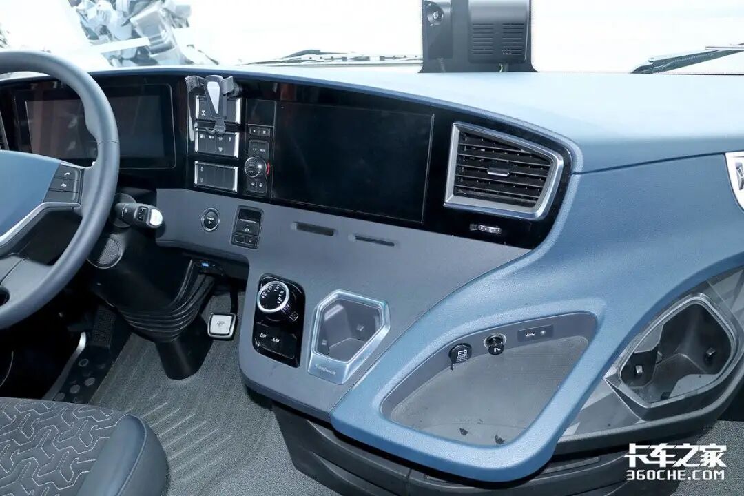 灯组方面,实拍车也不出意外的采用了其一直主打的星河矩阵大灯,全LED光源匹配,比传统的卤素光源,在使用寿命、照明亮度方面,都有着更佳的使用表现。而且LED大灯在高端重卡车型上,也基本已经成为了标配,这对卡友们而言,还是比较有利的。