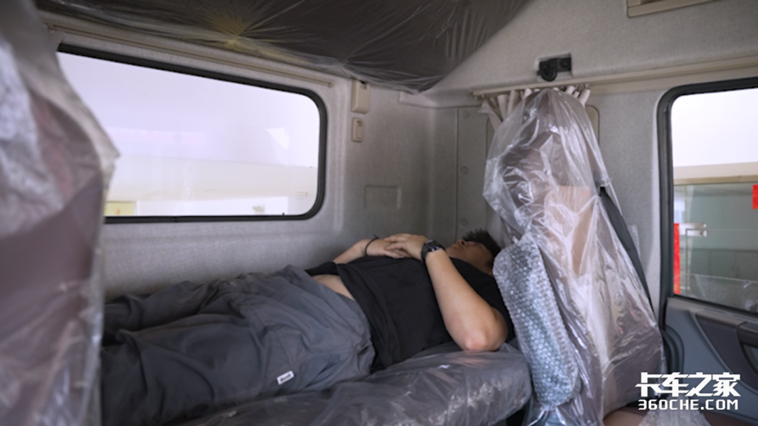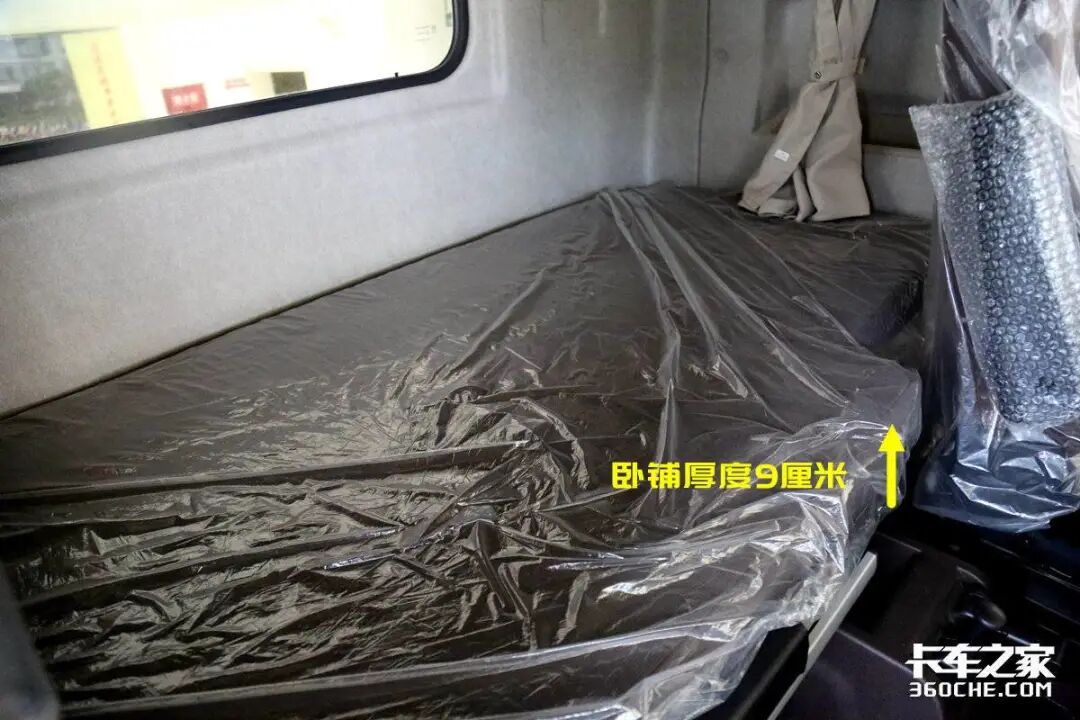 其次以身高187厘米、体重95公斤、肩宽53cm的编辑感受来看,整张卧铺在平躺状态下宽度设计合理,不过由于床垫厚度仅为9厘米,体重稍大一些的卡友在长期睡眠的状态下会觉得原厂床垫的支撑性不足,所以很多散户卡友会自己在外单独定做床垫、褥子一类的物品,增强卧铺的舒适性。