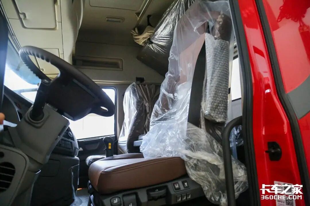 这台东风天龙KX旗舰经典版采用高顶双卧平地板驾驶室,卡友们进入休息区时能够更加便捷,同时驾驶室空间极其充裕,就算是在驾驶室内直立行走也毫无问题。另外,例如气囊减震座椅、多功能方向盘、中控大屏、全景影像、车道偏离预警等这些配置,这台东风天龙KX旗舰经典版也全都没有落下。