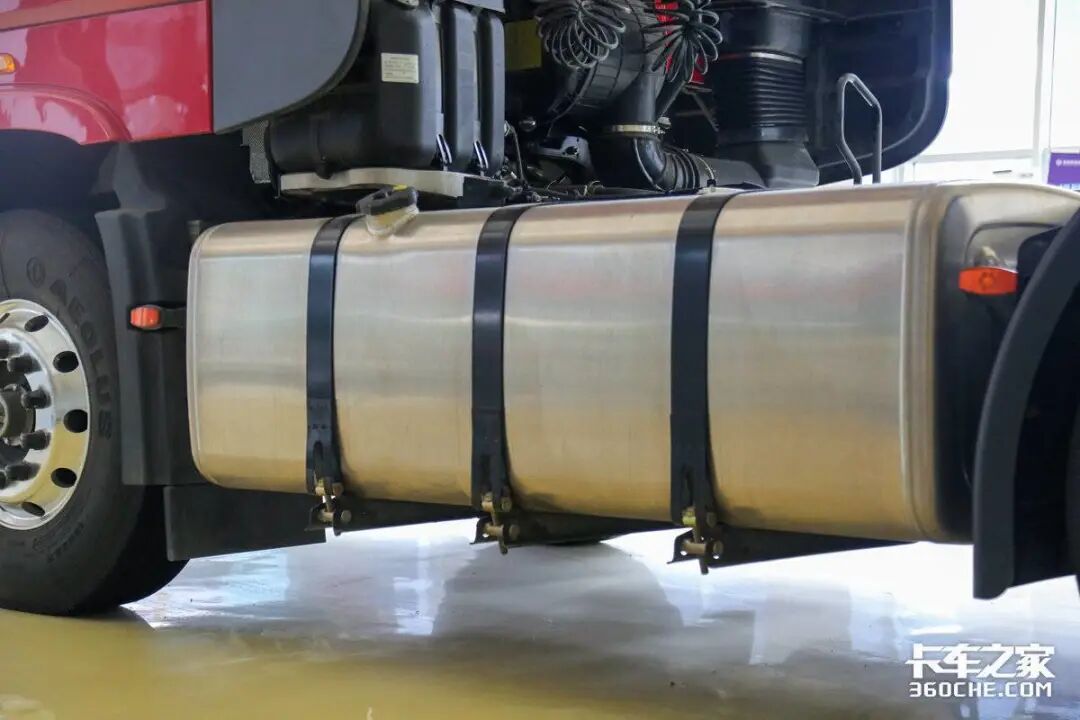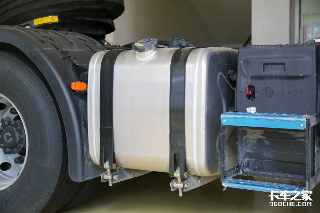这台东风天龙KX旗舰经典版采用双油箱的设计,总容积达到了1150L(850L+300L),以35L/100km的油耗计算,可以为整车带来3200公里左右的续航,就算是跑2000公里以上的长途运输,也能全程不加油,有效提升运输效率。