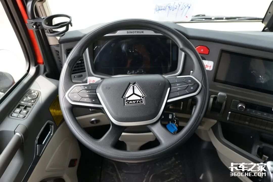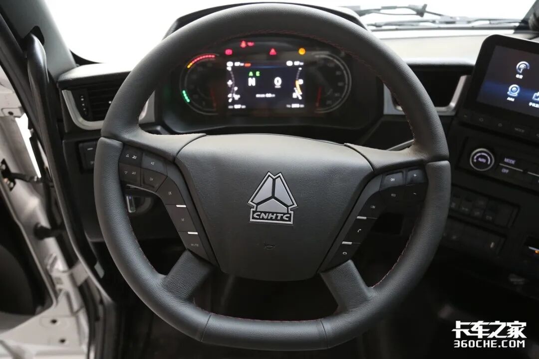 新晋选手重汽MAX则更加年轻化,较多的亮条装饰搭配乘用车风格的多功能按键,也是重汽最新的方向盘造型。