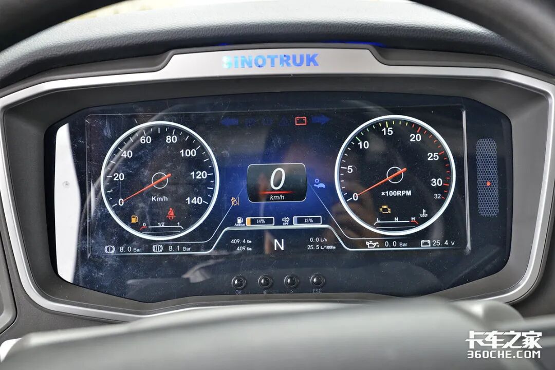重汽MAX配备的是12.3寸的全液晶仪表盘,不仅清晰细腻,信息也很丰富。而且在重汽MAX车辆上,还能显示尿素余量以及后处理的碳烟排放指标。