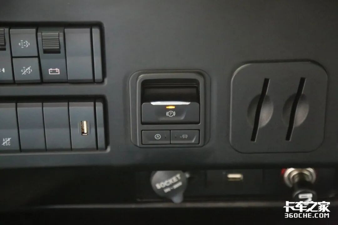 除了大屏幕外,电子驻车制动也集成在这里,并且通过下方两个小按钮,还可以控制主车的断气刹及挂车的断气刹,集成度够高。