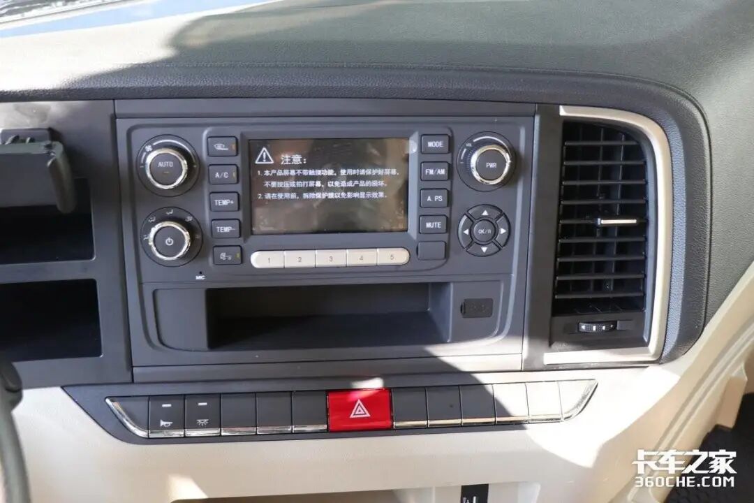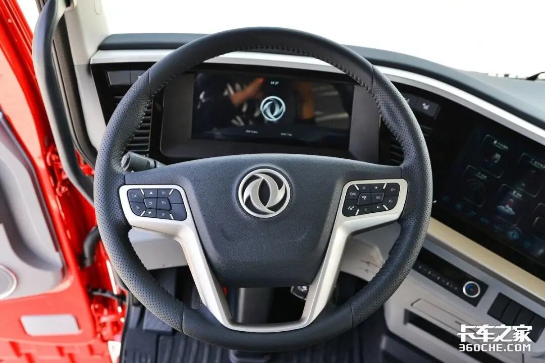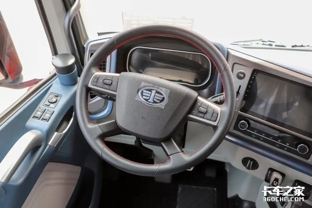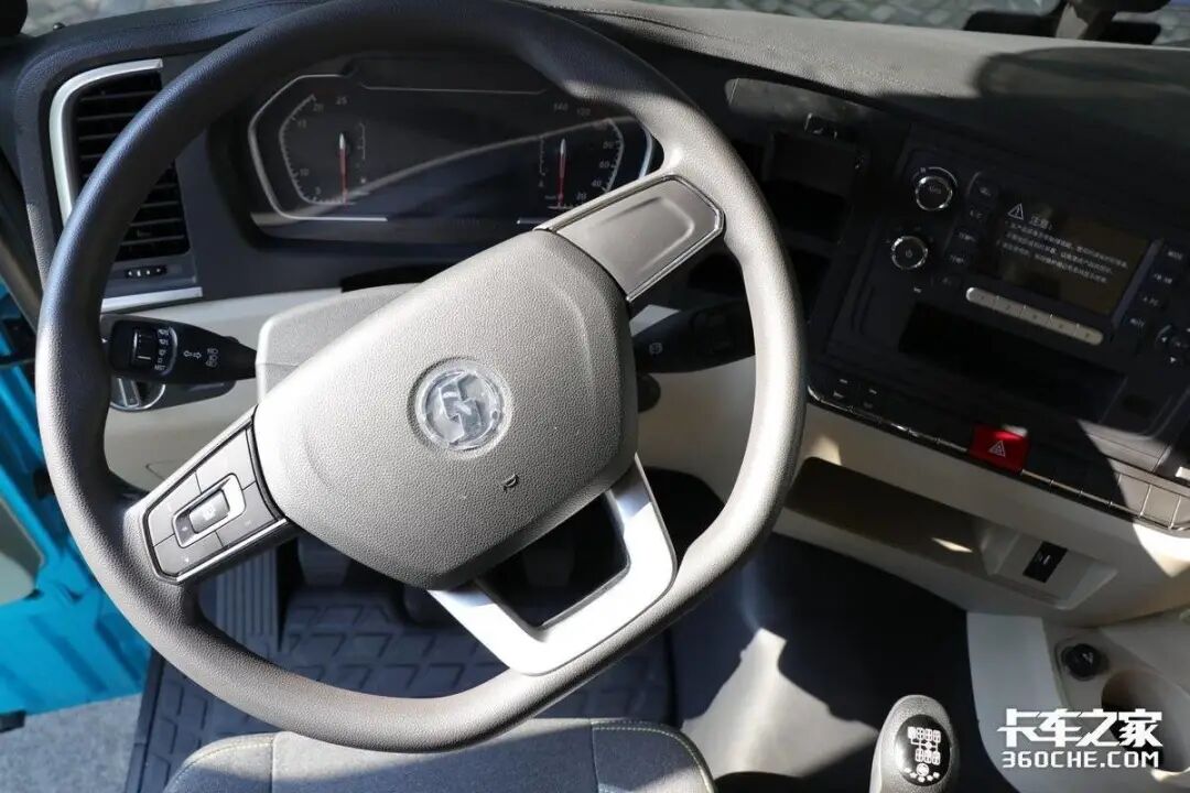 此外,驾驶室内部的配置以实用性为主,设计有多功能方向盘,包括音量等多媒体控制按钮,但没有蓝牙电话功能。此外,还配备了手机支架,方便卡友们在行车过程中固定手机。
