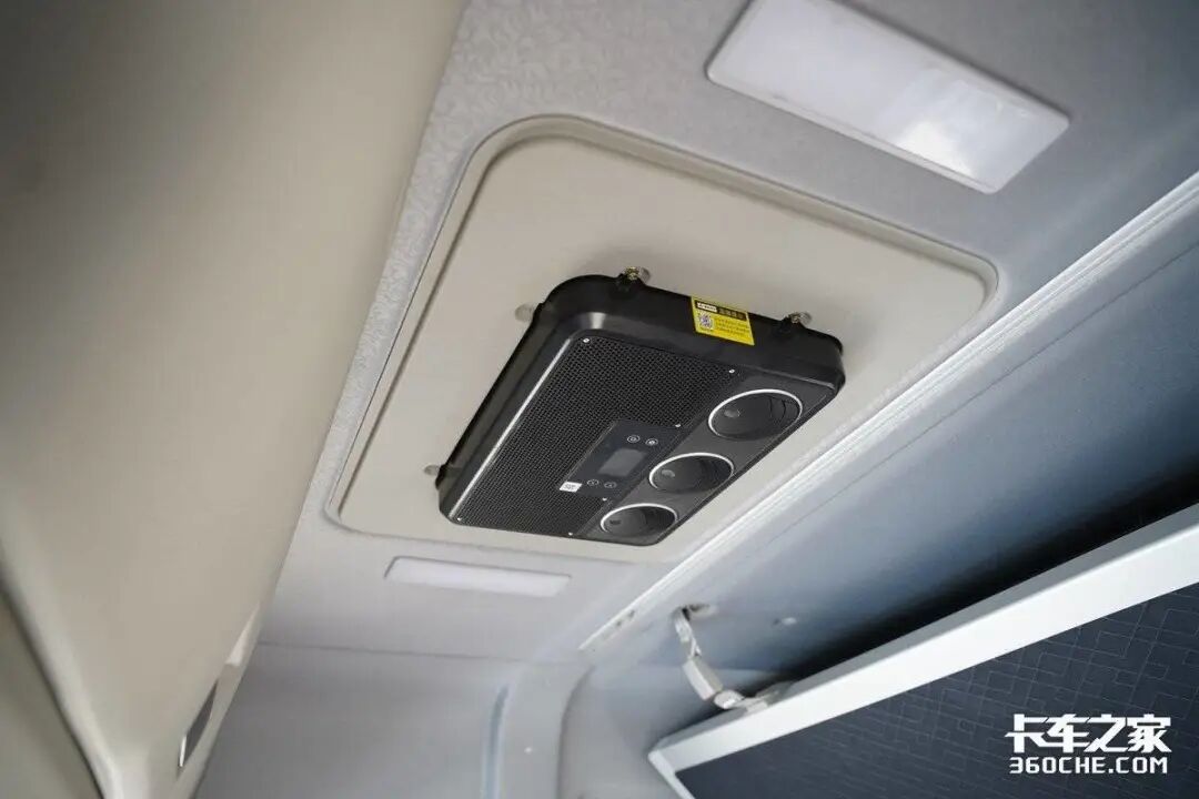另外,驾驶舱顶部标配有2100w的驻车制冷空调,能在三分钟内将室内温度调整到人体感觉最舒适的温度。