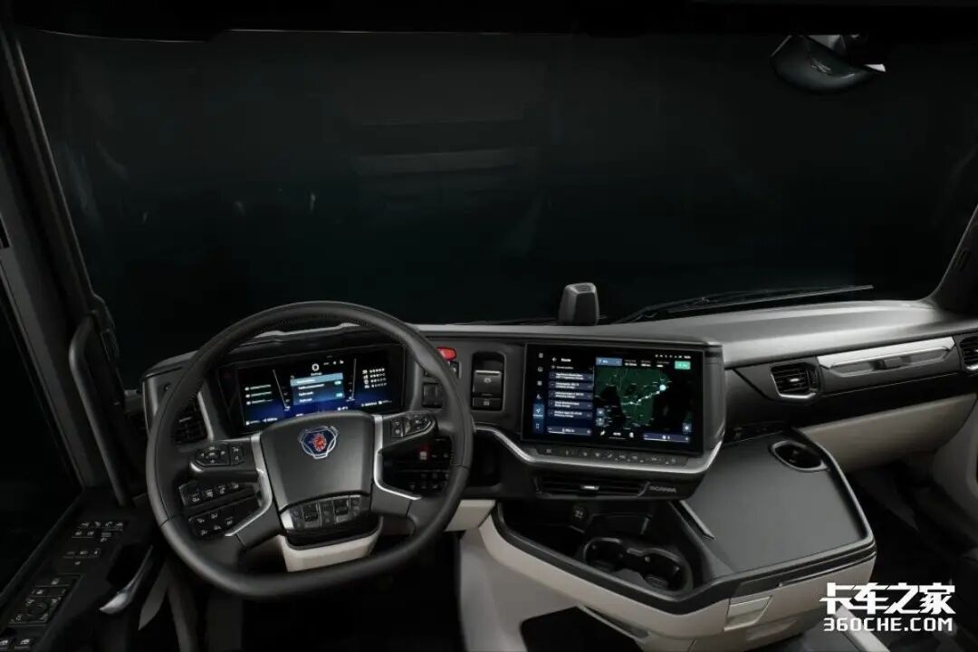新的数字仪表板绝对是值得斯堪尼亚粉丝所期待的,但与此同时驾驶室前部的新设计同样值得期待。在满足欧洲新法规的情况下,凭借这种新的流线型驾驶室造型,XXL版本也将很快与13.60米长的挂车结合使用,预计2024年将会有更多的新车消息公布。