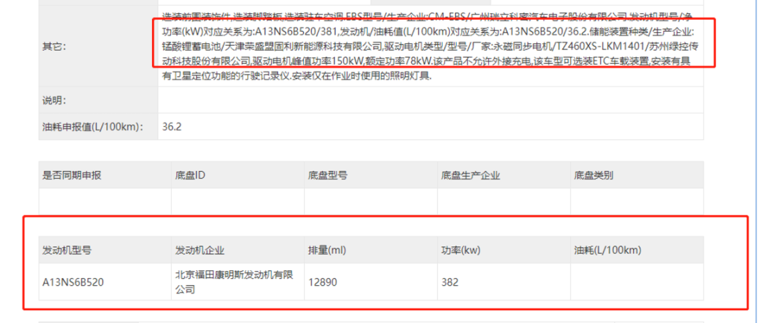 当然,最大的不同还是在动力方面,这台混动版车型搭载的是福康A13NS6B520发动机,其最大输出功率为382千瓦(520马力)。而在电机方面,该车搭载的是永磁同步电机,型号为苏州绿控TZ460XS-LKM1401,其峰值功率150千瓦,额定功率78千瓦,整车综合最大马力可达724马力,动力可以说十分强劲。