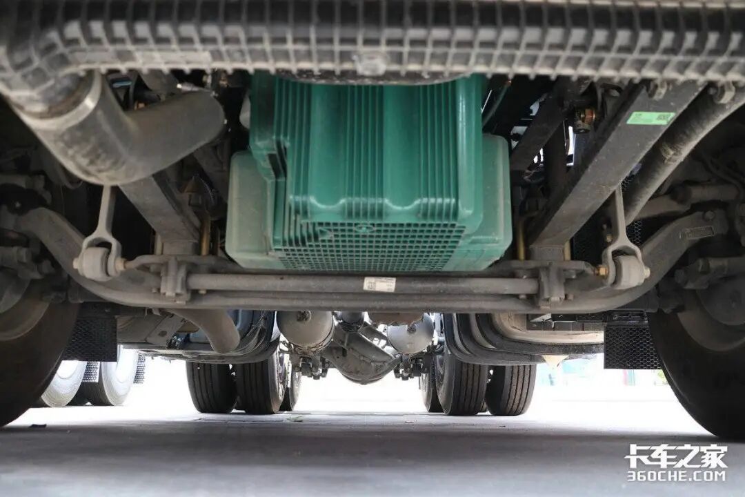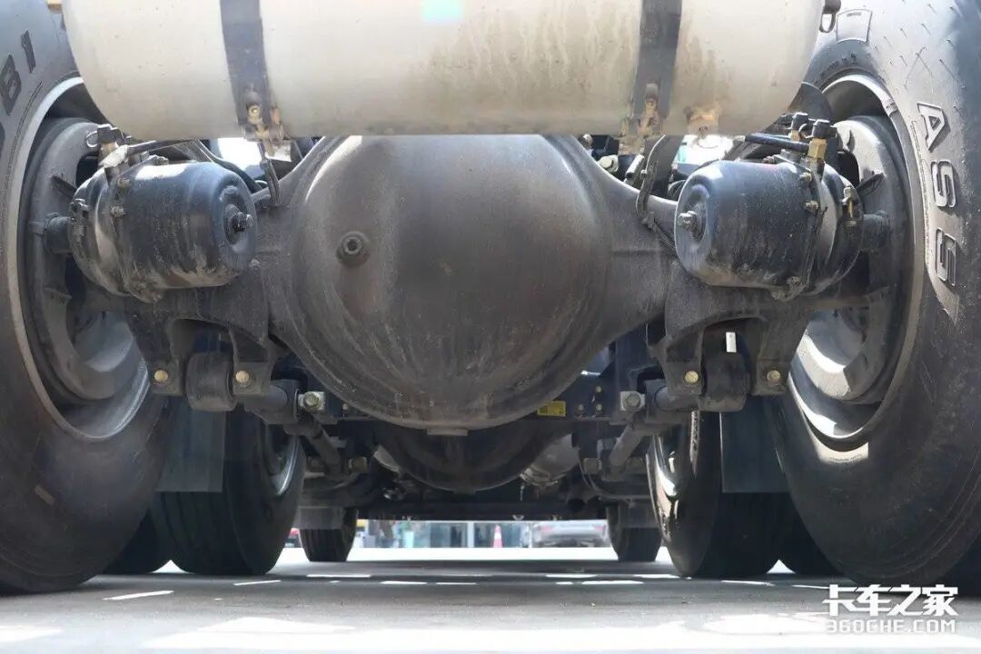 在后桥方面,这台解放J6V匹配的是解放自主的轻量化440后桥,速比为3.417。大马力+超速档+小速比的设计,能够使车辆运营更加经济高效,满足高时效性运输要求。而在悬挂方面,该车采用的是前2后3少片簧设计,配合上全车多处轻量化设计,整车自重仅为8.87吨。