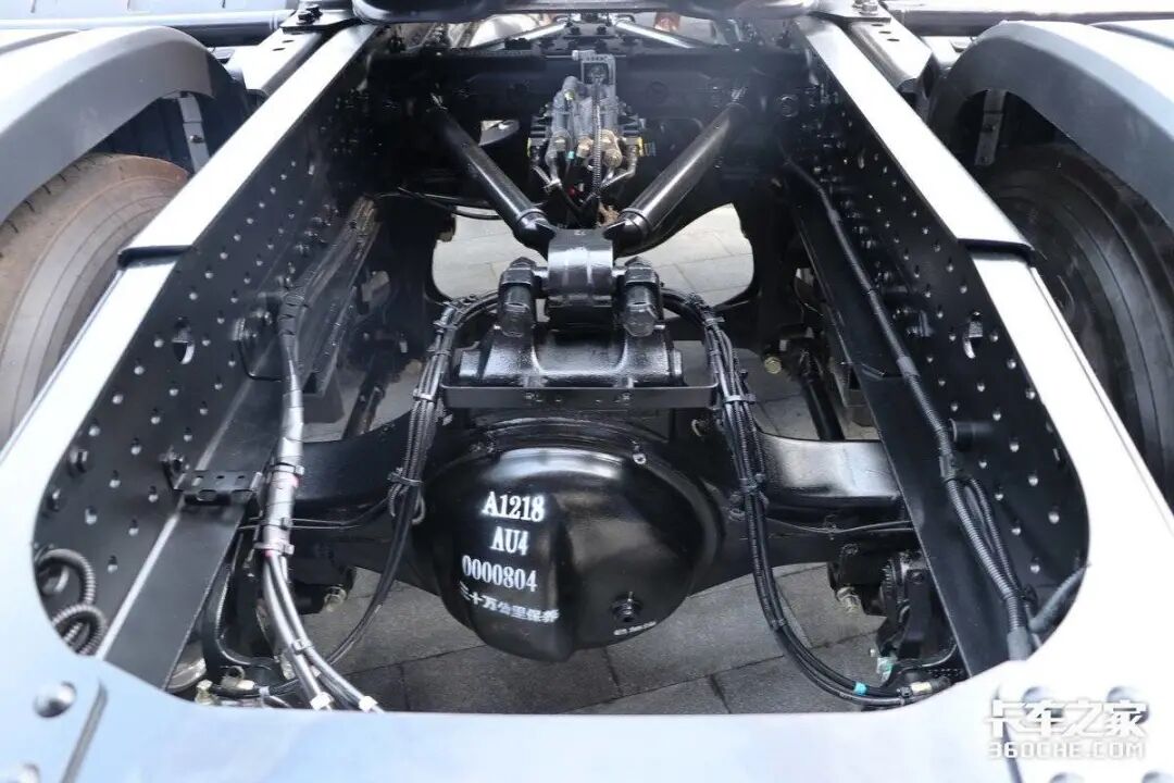 此外,该车还配备铝合金轮圈以及固特异品牌的12R22.5型号低滚阻轮胎,滚动阻力可下降20%。再加上前后两片板簧悬架,这些配置无疑强化了其高端中长途、干线物流运输的车型定位。