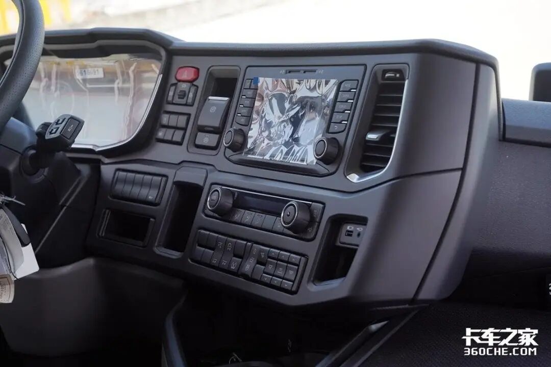 驾驶室是斯堪尼亚的一大亮点,S系列的舒适性无与伦比。实拍车型采用高顶双卧平地板驾驶室,空间感比G系列更出色。驾驶舱采用四点气囊悬浮的悬挂形式,可有效降低颠簸感。主副驾座椅均是匹配了支持多项调节的气囊座椅,驾驶员可以找个自己最舒服的坐姿,来降低长时间行车所带来的疲劳感。