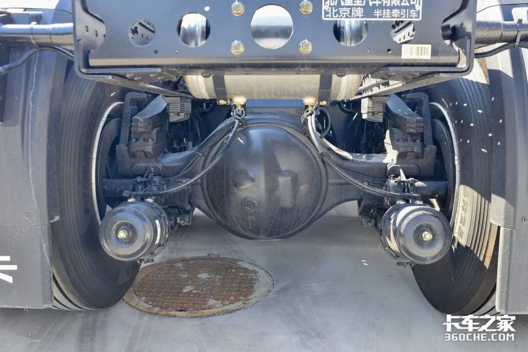 在底盘方面,这台北京重卡追梦版采用AM5前桥和高效445后桥,速比可选2.643和2.733。至于悬架方面,该车采用的是前2后3少片簧设计,如果有甩挂运输需求的卡友也可以选择8气囊后桥。