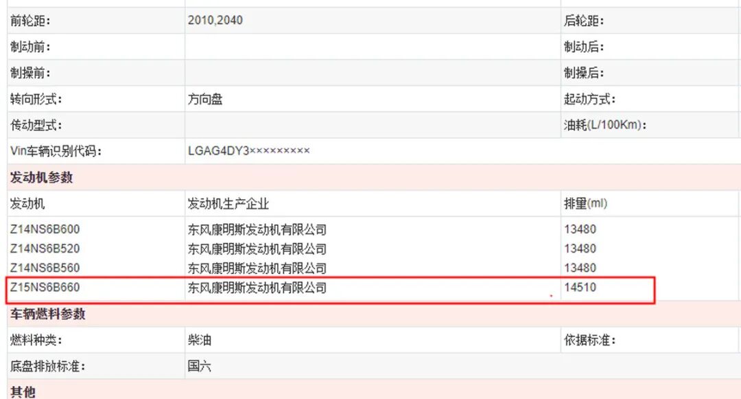 结合此前天龙GX的公告信息来看,整车在动力上不仅是搭载的Z14发动机,东风康明斯Z15NS6B660系列发动机也赫然出现在公告信息当中,最大输出功率可达660马力。从整体信息来看,天龙GX可以实现480-660马力的覆盖。当然,更多详细信息或许会在今年的武汉车展上公开。