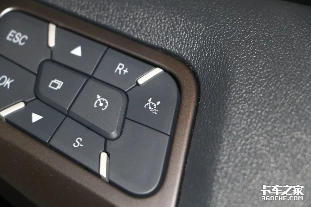 这里我们要说的重点是,在这款车的方向盘上,我们发现了一个PCC按键。如果没有错的话,这个功能应该与地图预见性巡航系统一样。通过GPS系统和车辆内置的三维地图,结合驾驶员设置的车速、前方道路坡度信息,自动的控制发动机和变速箱进行动态调整车速,从而优化发动机效率、变速箱档位控制,避免不必要的能量损失。