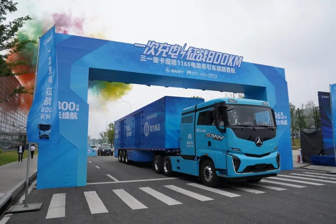 咱们先来回顾一下三一重卡重卡魔塔1165做了什么:前几天,三一重卡使用魔塔1165车型完成了一次从湖南到广东的长途行驶,经历了约16小时,其在不充电的情况下行驶了819.6公里(表显),电量剩余17%,以出色的成绩打破了吉尼斯世界纪录,成为了半挂式电动卡车单次充电行驶最远距离的吉尼斯世界纪录保持者。