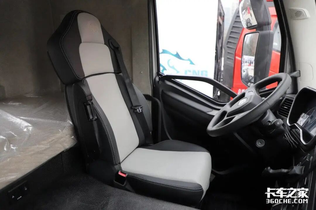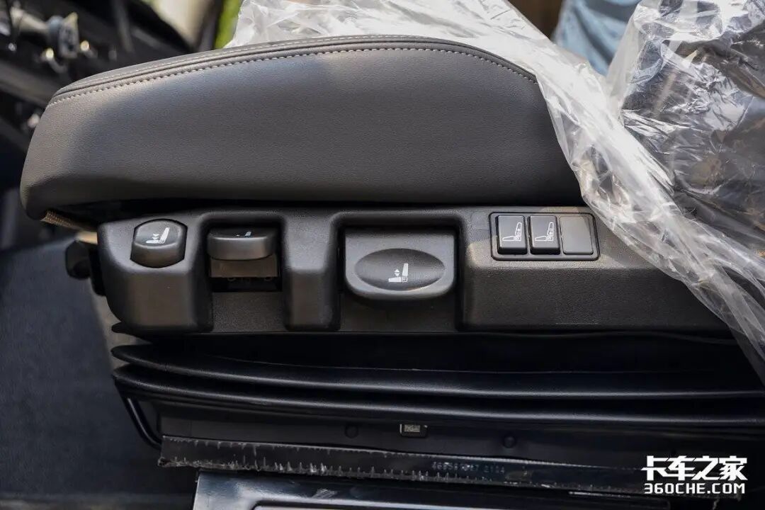 最后,在舒适性方面,对于一台解放卡车来说这并不需要过多担心。主驾驶座椅配备有气囊减震座椅,带有一键充放气、仰角调节、高低调节、阻尼调节、两级腰托等功能。中控区域各功能区划分明确,并且还支持选装10英寸中控大屏,可实现四方位影像功能,在园区移库时能够更加安全便捷。
