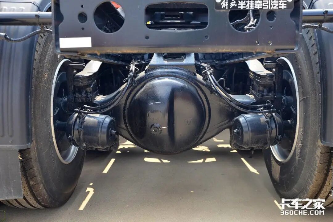 在底盘方面,这台悍VH前桥采用的是DY011前桥,后桥采用的是435升级冲焊桥,后桥速比3.7。至于悬挂方面,该车采用前2后3少片簧悬挂,在保证承载力的同时,也可有效降低车身自重。在经过一系列科学降重之后,如铝合金储气筒、800L铝合金油箱以及铝壳变速箱等,整车自重仅8.2吨。