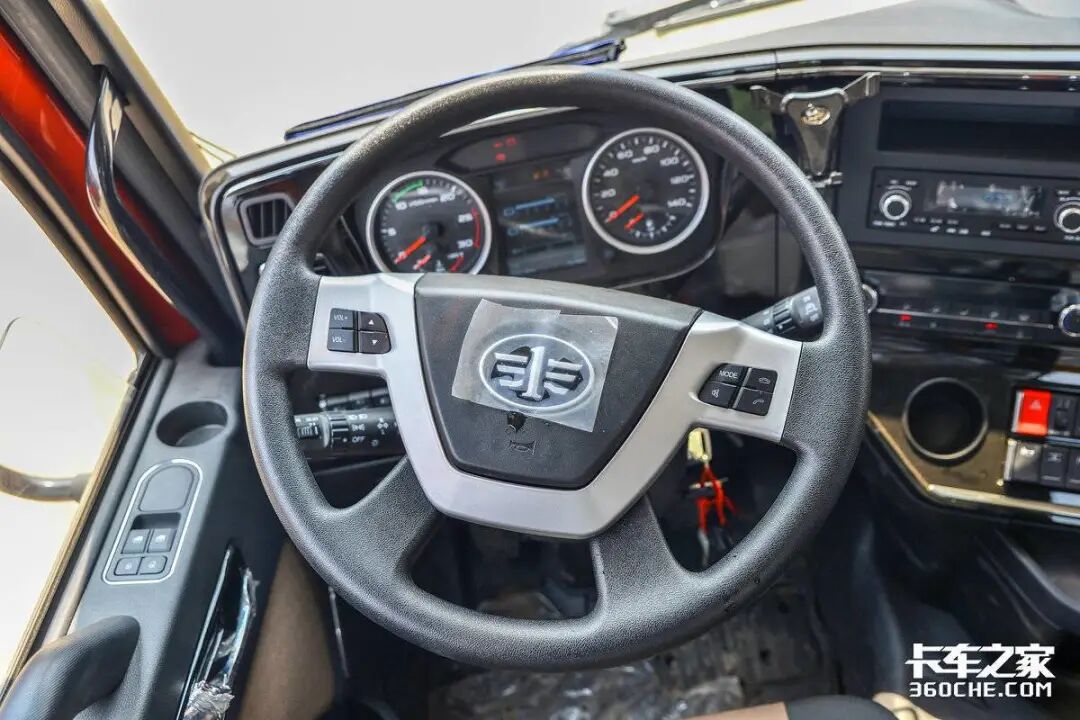 中控区域使用了大面积的钢琴烤漆面板以及镀铬饰条进行勾勒线条,看起来更具精致感。可以看到,这台悍VH还配备有原厂手机支架,方便卡友们放置手机,同时看一些显示内容也比较方便。在配置上,该车配备有多功能方向盘、收音机、自动空调等,此外也可选中控大屏,可实现手机互联、影音娱乐、四方位影像等功能。