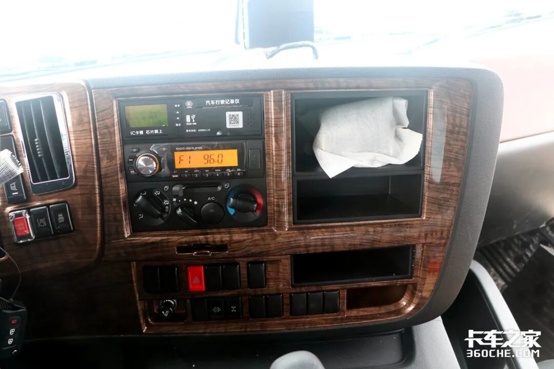 整个中控台采用了仿木纹饰板,这样的设计除了有些复古之外,整体的质感还是可圈可点的。所有按键均采用了实体布局,这对于经常跑运输的卡友而言,操作十分便捷。不过要是能够提供原厂选装的液晶屏、导航就更好了。