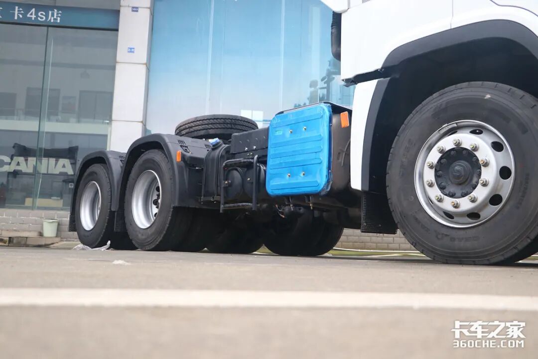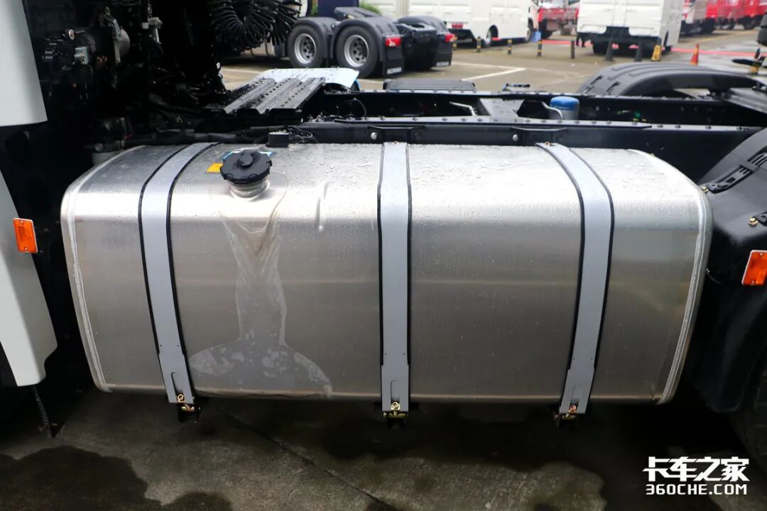 在油箱方面,这台巨咖采用了800升的单侧铝合金油箱设置,可以为这台巨咖提供大约2500km左右的续航里程,中长途的干线运输不在话下。