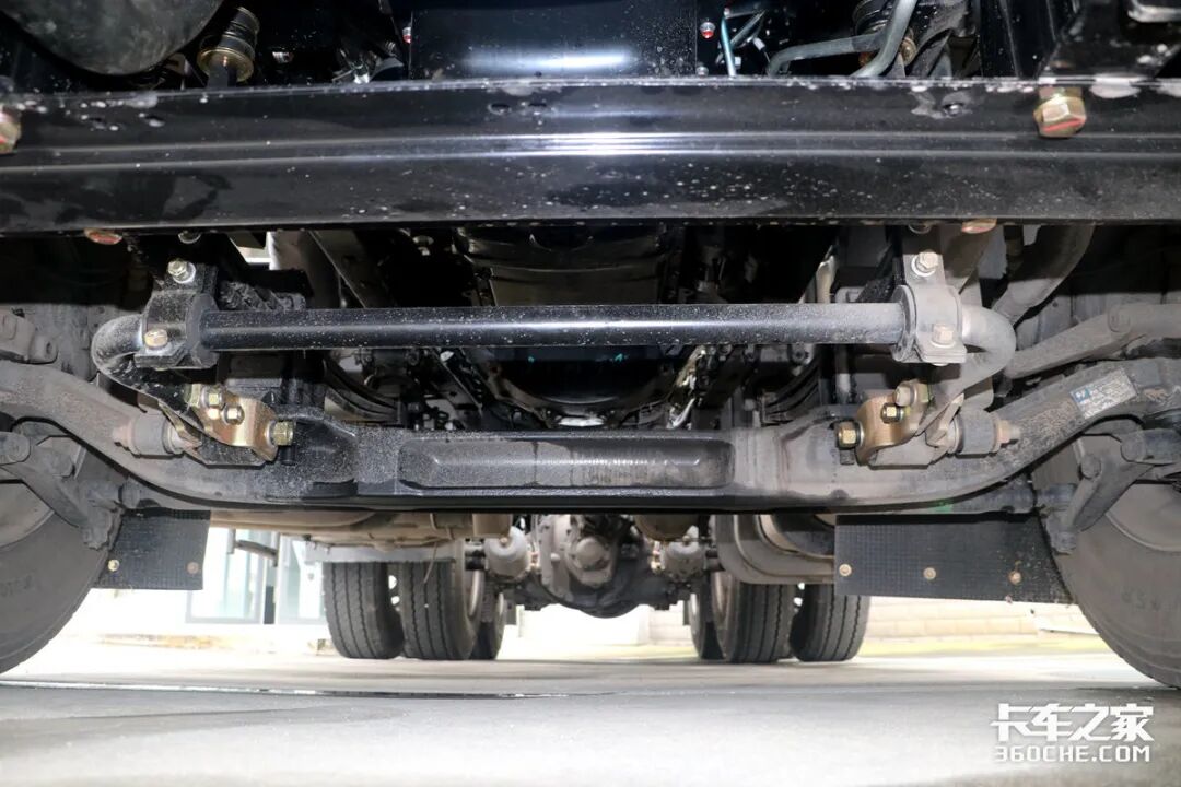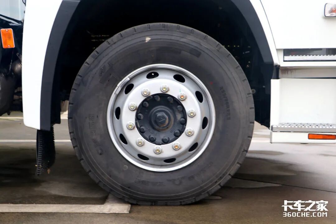 实拍车型采用了朝阳CM958系列轮胎,主打综合工况,尺寸为295/80R22.5。并且前桥还配备了盘式制动,相对于鼓式制动而言,盘式制动器拥有更加线性的制动脚感,并且盘式制动在长时间、长距离的反复制动后拥有更高效的散热效率和抗热衰减能力。此外巨咖的前桥还配备了横向稳定杆,转弯操控时更有信心。