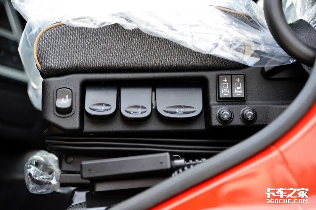 为提高卡友们的乘坐舒适性,这台天龙KL采用的是带通风加热功能的气囊减震座椅,并且带有多项调节功能,包括腰背部支撑调节、气囊软硬调节等,无论是夏天炎热时,还是冬天寒冷时,都可以让卡友们更加舒服。