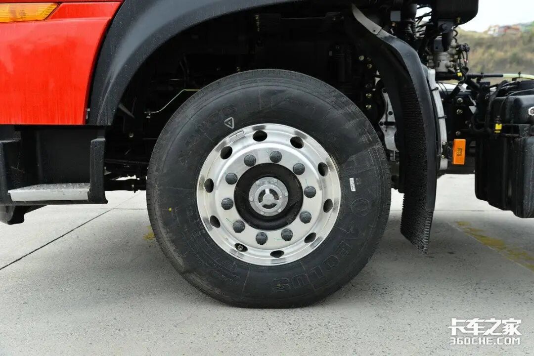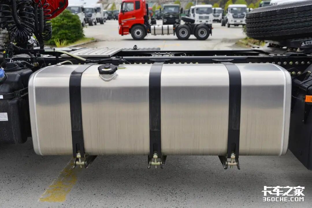 该车油箱容量为800L,使用铝合金材质,并结合全车多处轻量化设计,如铝壳变速箱、铝合金车轮等,整车自重仅为8.3吨。