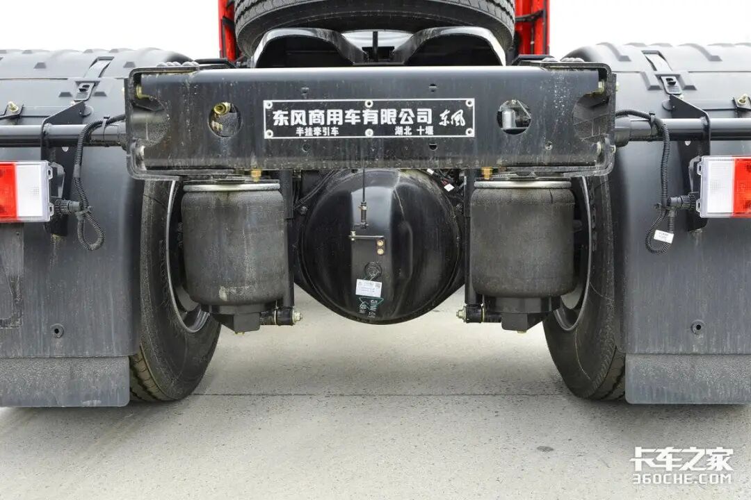 在底盘方面,这台天龙KL采用465后桥,后桥速比为3.417。至于悬挂方面,该车采用的是前2片钢板悬架,后气囊悬架的设计。气囊悬架的设计可以使车辆在高速行驶时更加稳定,有效过滤道路颠簸,降低货损,有利于运输高附加值货物,同时还可以提升甩挂运输效率。