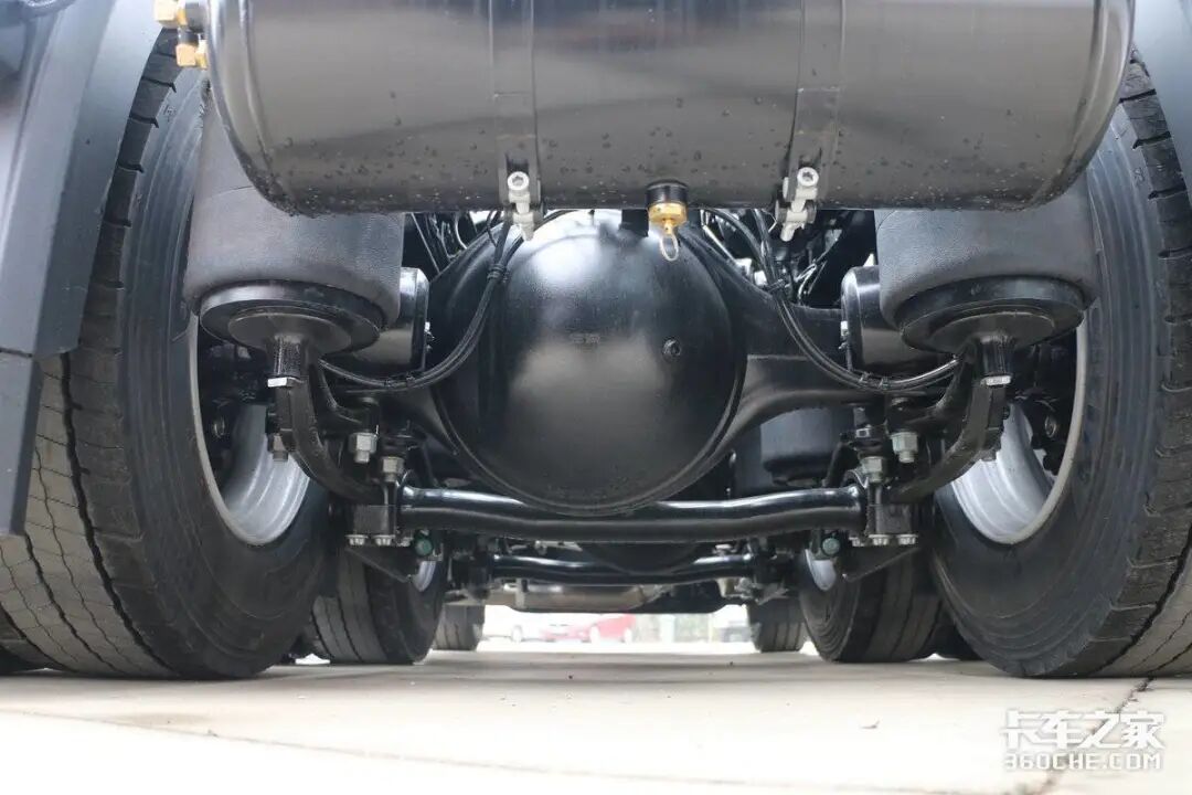 在底盘方面,国产奔驰Actros C采用了前2片板簧悬挂,后空气悬架的设计,可以有效降低货损,利于运输高附加值货物,同时也方便甩挂运输。后桥采用美驰系列的车桥产品,后桥速比为2.643。
