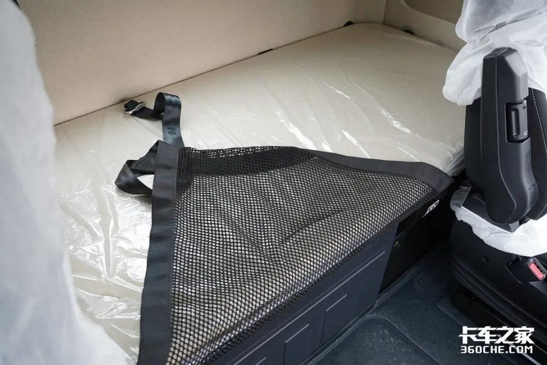 在驾驶室方面,这台国产奔驰Actros C采用的是高顶双卧平地板设计,下卧铺的宽度近90cm左右,并且整个床铺的尺寸非常规整,可以让卡友们躺卧得更加舒适。