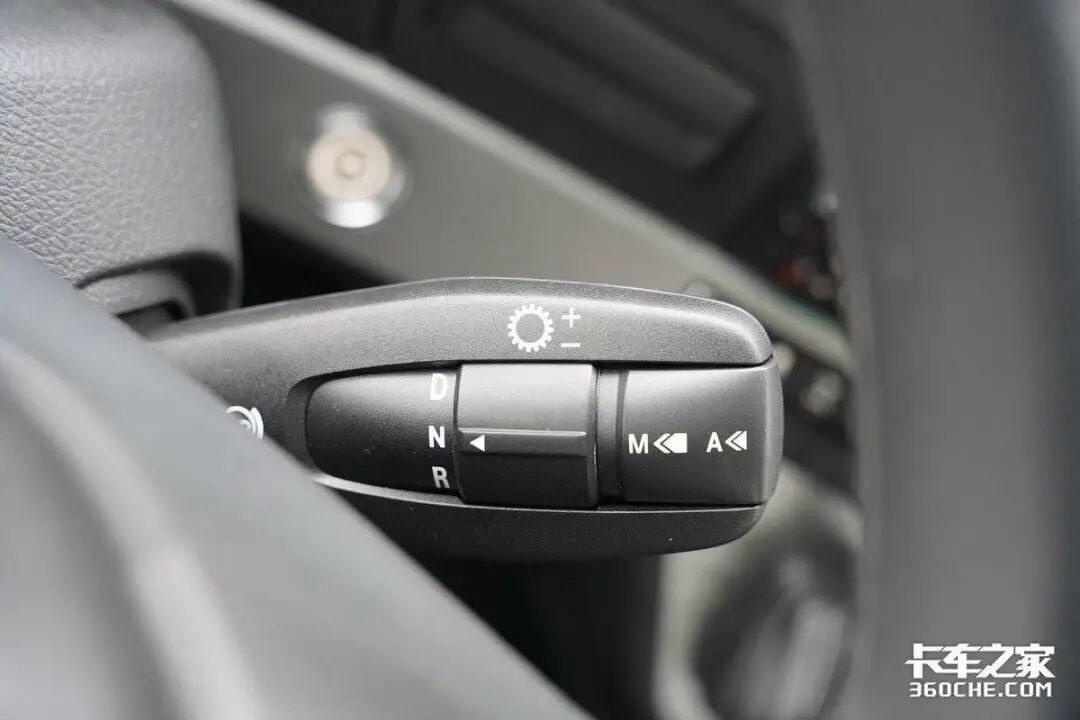 而在变速箱方面,该车与之匹配的是全新一代Traxon传胜系列12档AMT变速箱,支持空档滑行以及PreVision预见性驾驶等先进技术,帮助车辆实现更好的油耗表现。采用怀挡设计,拨杆被安置在了方向盘的右侧,集成了D档(前进档)、N档(空档)、R档(倒退档)、手动/自动切换和发动机制动功能,操作逻辑与咱们乘用车基本类似。并且,在挂入“D挡”或“R挡”后,不需要踩油门,车辆就会缓缓前进和倒退。
