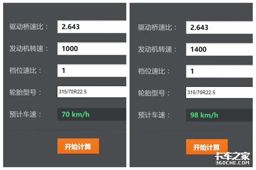 整车轮胎规格为315/70R22.5 20PR,经卡车之家简易版车速计算器计算,国产奔驰Actros C在1000-1400rpm的经济转速区间时,时速可高达70-98km/h,完全能够满足高时效运输需求。