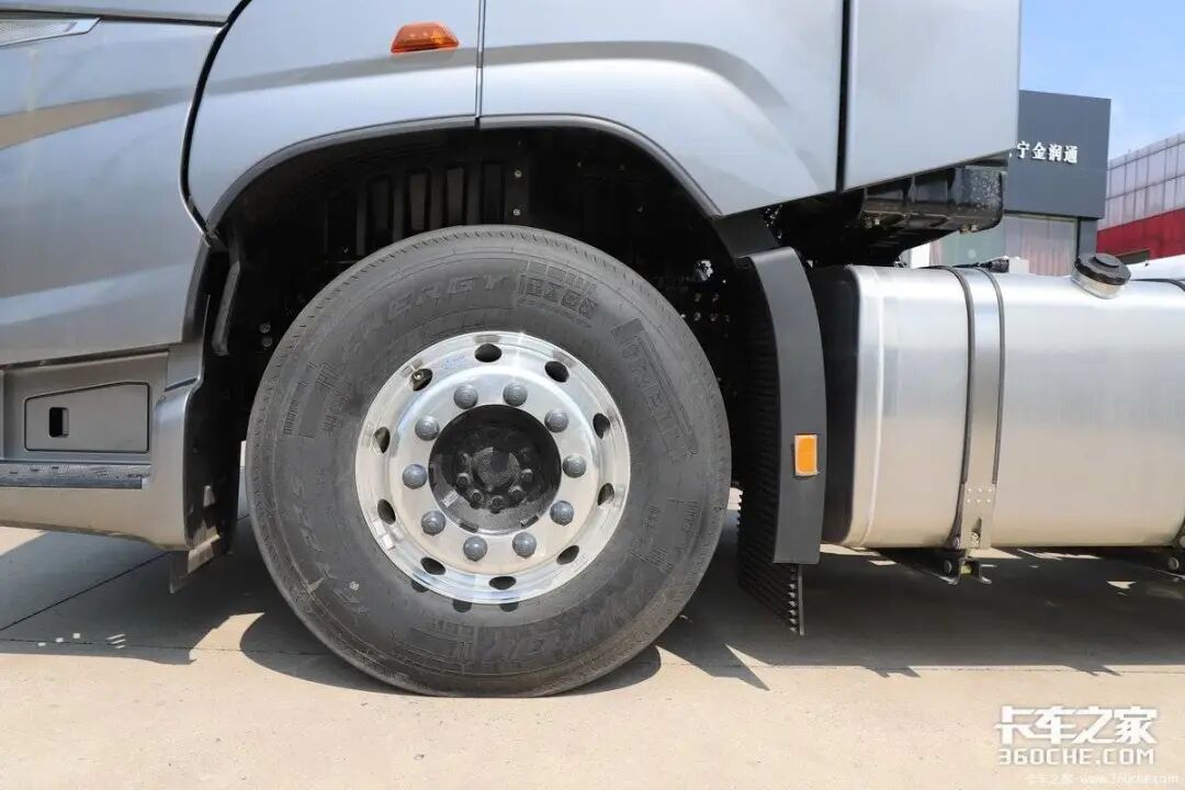 在底盘部分,福田欧曼银河的车架尺寸为225/286×80×(8+5)mm,前桥允许载荷7000kg,后桥为440型号后桥,速比为2.643,后桥允许载荷18000(二轴组)kg。轮胎规格为12R22.5 18PR,配备10个轮胎。
