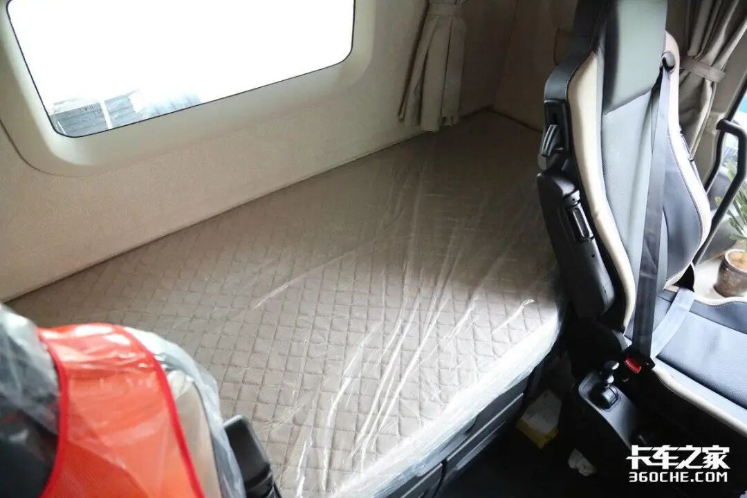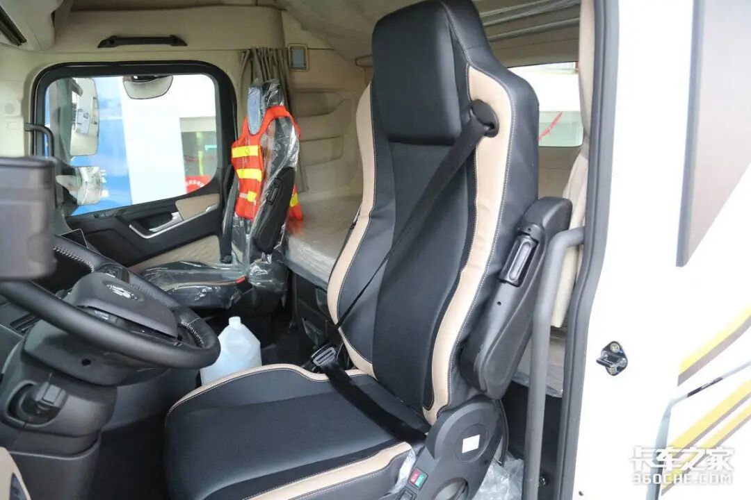 在驾驶室方面,该车采用高顶双卧平顶板设计,带来了极为舒适的内部空间感,下卧铺最宽处超过了900mm,可以让卡友们很舒服的在卧铺上睡上一觉。此外,配备的气囊减震座椅设计很舒适,不仅支持各项阻尼和姿势的调节,同时靠背的上半部分以及坐垫的长短同样也能调节,长期乘坐状态下拥有非常舒适的驾驶坐姿。