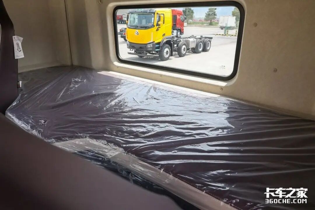 接下来,我们再来看看该车在驾驶室舒适性方面表现如何。得益于高顶双卧平地板设计,驾驶室内部空间表现十分不错,卡友们能够较为自由的活动。床垫的厚度超过了10厘米,卧铺最宽处达到了90厘米,日常躺卧也是十分自如舒适。